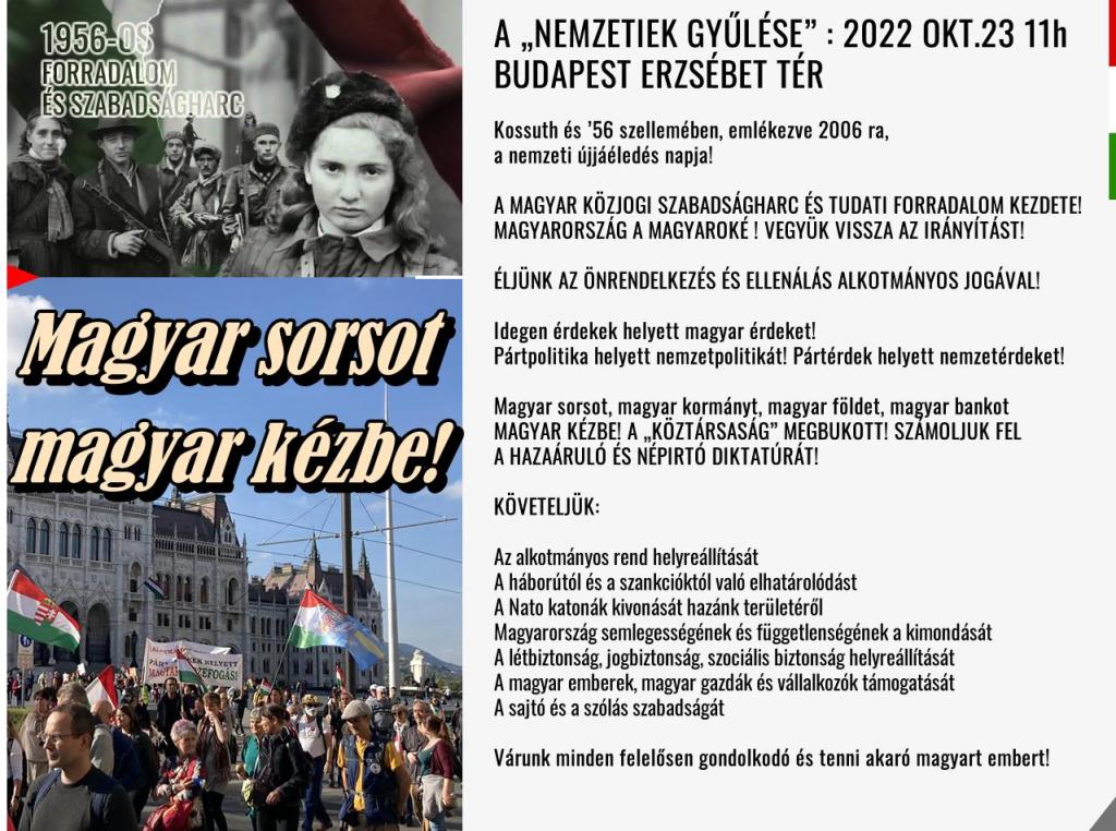 Október 23-án 11 órától Pesten az Erzsébet téren lesz a magyarok találkozója!