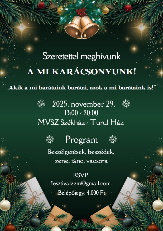 Belépőjegyre van szükség a költségek előteremtése érdekében (terem, zenei előadók még nem kiszámítható költségeire, egytál ételes vacsora, hangosítás esetleges bérleti díja, takarítás stb) – 4.000 Ft lesz a vacsorával együtt. Ezt adományként kell bedobni a belépésnél – ne utaljatok előre, hanem hozzátok magatokkal készpénzben, hogy ne kelljen visszaadni!